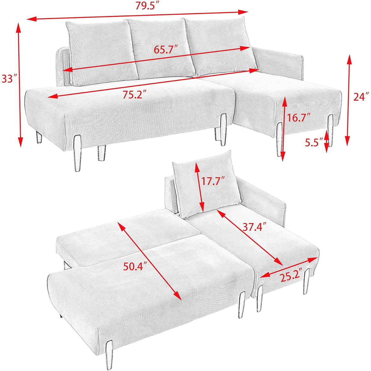 The soft corduroy upholstery adds a rich texture that feels cozy while remaining durable for daily use. Spacious seating and supportive cushions provide a comfortable place to relax, entertain guests, or unwind after a long day. The included three matching pillows enhance both comfort and style, offering extra support and a coordinated look.