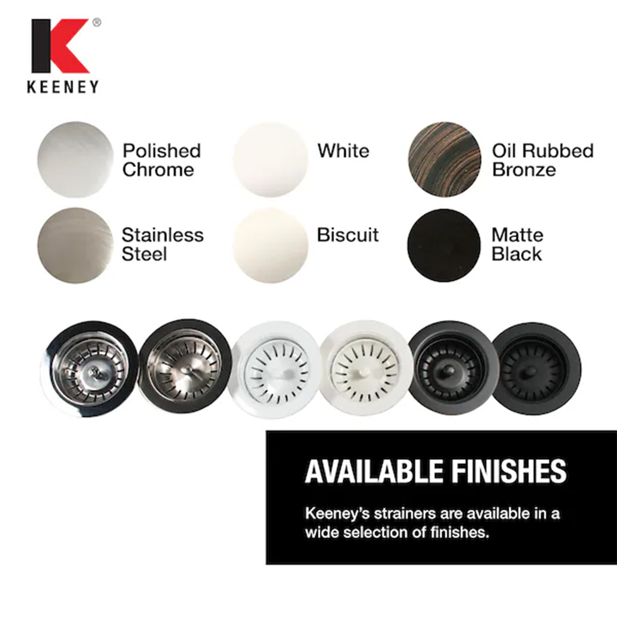 Keeney Heavy Duty Kitchen Sink Strainer with Power Ball Basket, White