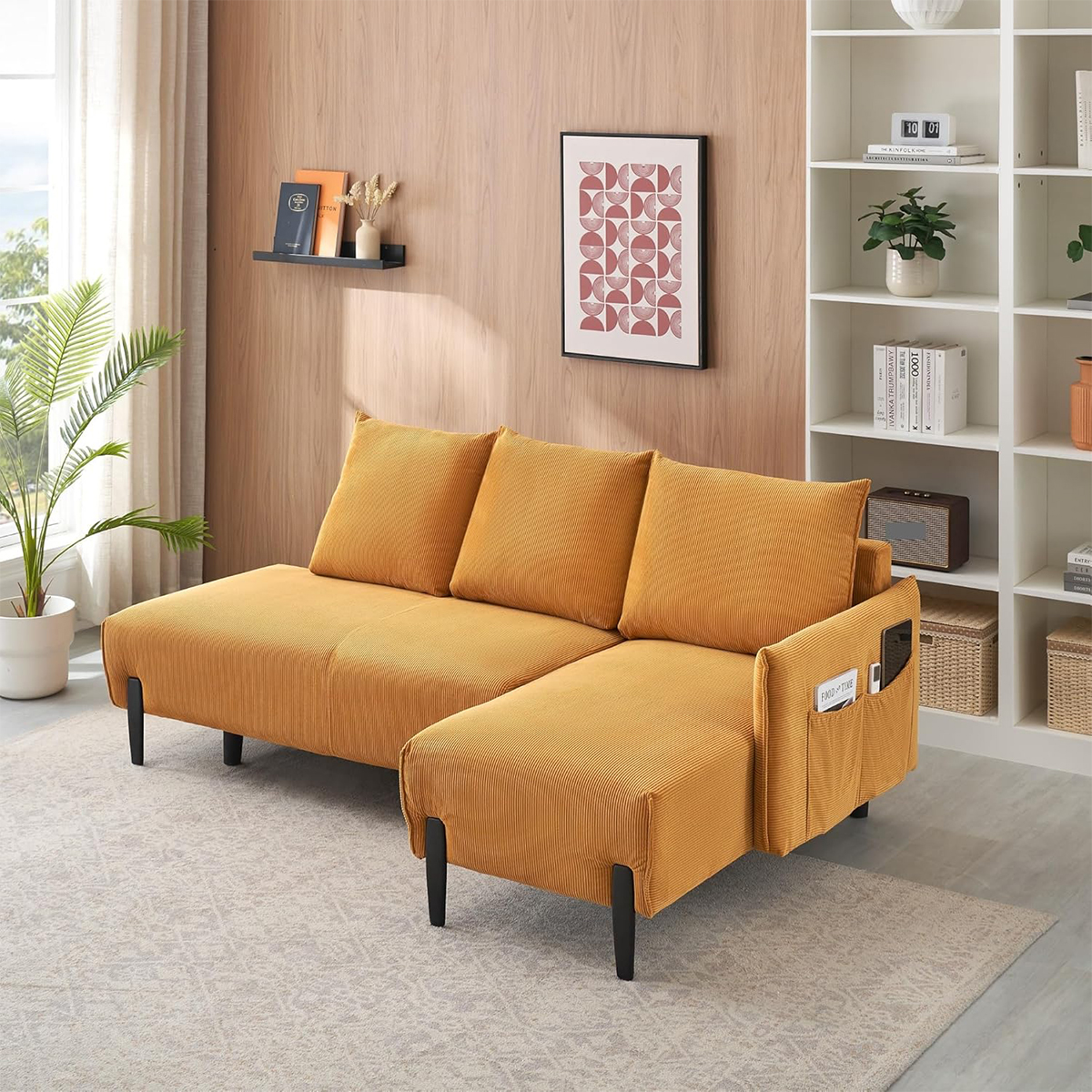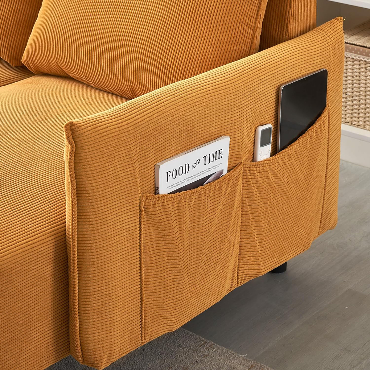 Comfortable, stylish, and functional, this corduroy sofa is the perfect blend of design and practicality for modern interiors.